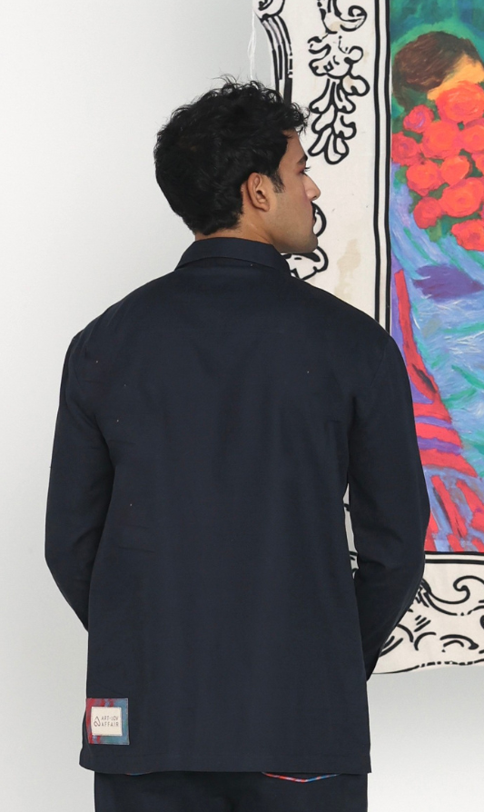 The billie Shirt features a zip-front shirt with Vienna artwork panel on the left side .